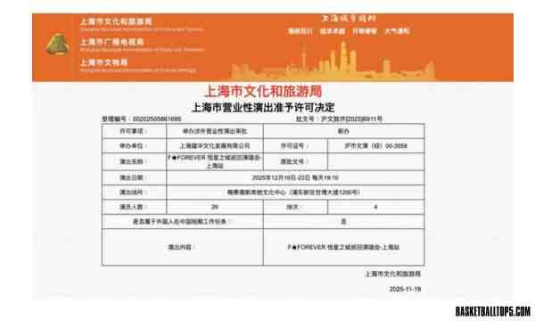 根據上海市文旅局官網公布的「上海市營業性演出準予許可決定」,名為「F★FOREVER 恆星之城巡回演唱會-上海站」的活動已正式獲批,將于2025年12月19日至22日在上海梅賽德斯奔馳文化中心連續舉行4場演出。附件的26人演出名單中,明顯缺少朱孝天的名字,僅有言承旭、周渝民與吳建豪等三位F4成員現身。