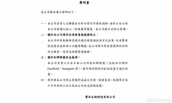 王韡蒨生前投入大量心血經營個人美容與生技事業,如今隨著她的離去,公司也發布公告指出,由于王韡蒨為公司的核心靈魂,經團隊審慎評估後,決定全面停止營運。目前已進入庫存出清階段,並終止所有售後服務,其個人及公司的相關社群賬號也將永久停止更新與回覆。