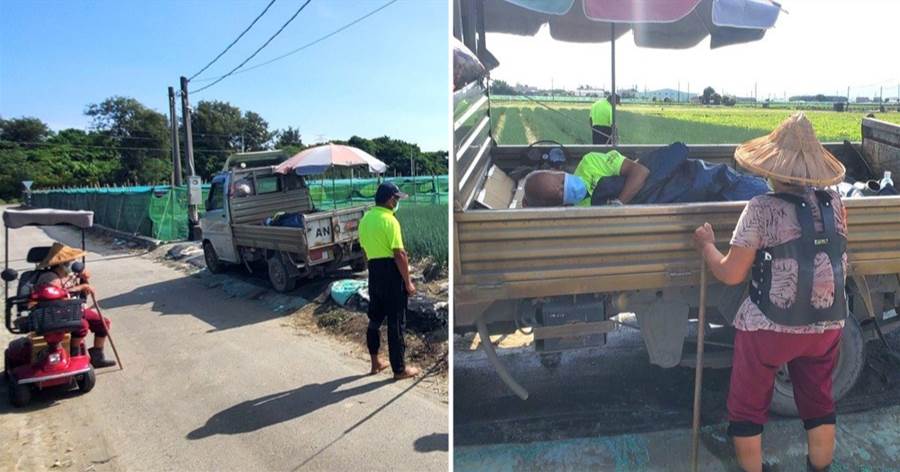 10多天前深夜一大片青蔥被人偷竊拔走,另有約1.1分地蔥田則剛成熟,為避免小偷再光顧,他每晚開著小貨車到田邊夜宿守,其52歲兒子不忍父親日夜操勞,也陪老父守田,父子輪流守夜,車斗只簡單鋪塑膠板,頂一把遮陽傘,連3餐、服藥都在車上解決,寸步不離。