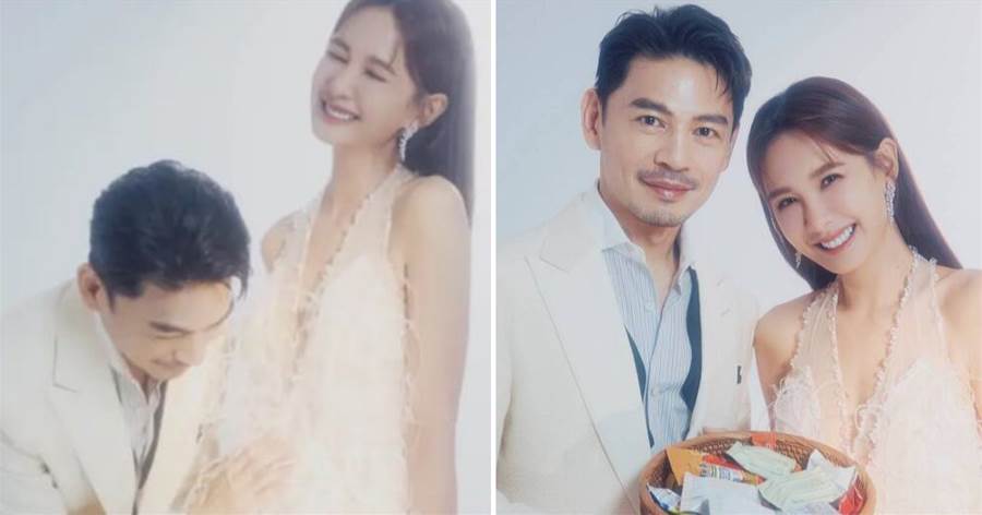 畫面中兩人一起端著一籃糖果,網友大呼:超像新郎、新娘送喜糖。還有一張照片是阿Ken蹲低身子,撫摸著安心亞的腹部,大家都笑著說:這組結婚照拍得不錯,真的很希望你們在一起。