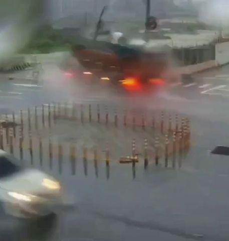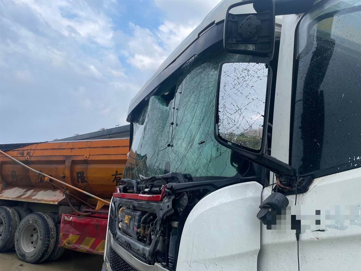 新北市泰山區昨天(6日)清晨發生聯結車失控將1位行人撞個粉碎、撞傷2名工地保全、撞壞分隔島、撞斷消防栓的重大事故,新角度的監視器畫面只見撞擊瞬間衝擊力相當大,整個現場猛烈晃了一下宛如強震。