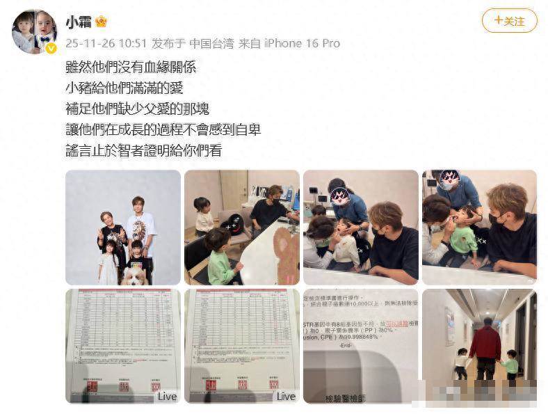 小霜曬出孩子們和羅志祥的相處日常,並公佈親子鑑定報告,力證並無血緣關係。