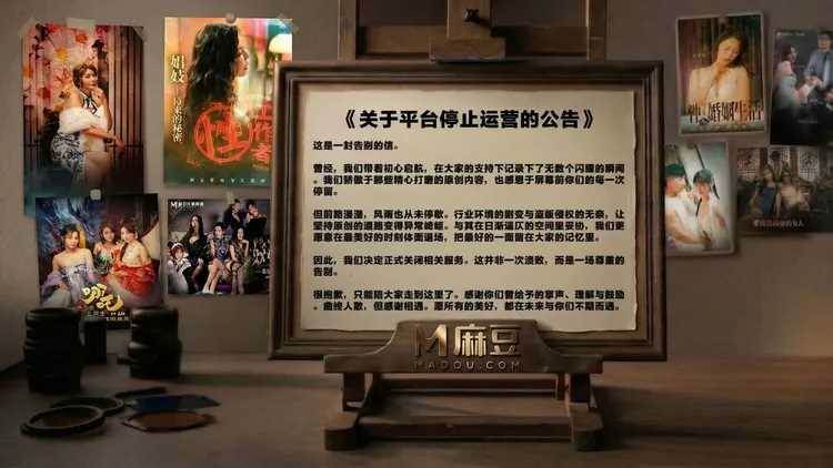 麻豆傳媒在官網發布的公開信中表示,堅持原創的道路因行業劇變與盜版侵權問題而「變得異常崎嶇」,最終選擇「在最美好的時刻體面退場」。信末留下一句「很抱歉,只能陪大家走到這裡了」,語氣不捨卻態度堅決。