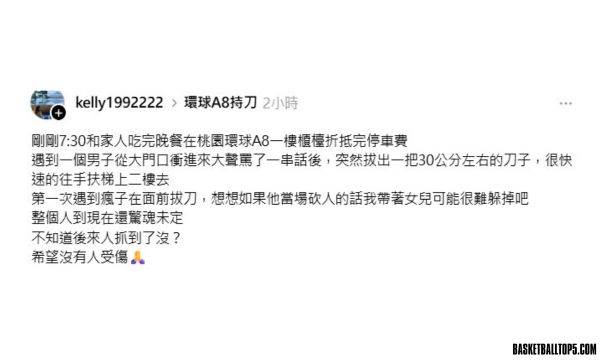 桃園市環球A8購物中心今(7)日晚間發生驚險事件,一名男子在一樓持刀與人發生衝突,隨後迅速衝向手扶梯前往二樓,現場民眾嚇得驚魂未定。目擊者透露,當時自己正與家人用餐後折抵停車費,目睹男子突然拔出約30公分長的刀子,直呼「第一次遇到瘋子在面前拔刀,差點躲不及」。