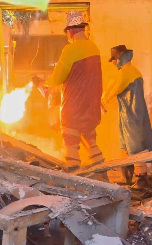 就在他們協助災民清淤過程中,還發現蜂窩,由于災區物資缺乏,再加上這些義消隊員都受過專業訓練,雖然沒有捕蜂衣,就在當地買了兩件雨衣,再用膠帶將雨衣封住,避免被蜜蜂叮咬,靠著自製的捕蜂衣,直接化身「滅蜂窩超人」成功清除蜂窩。