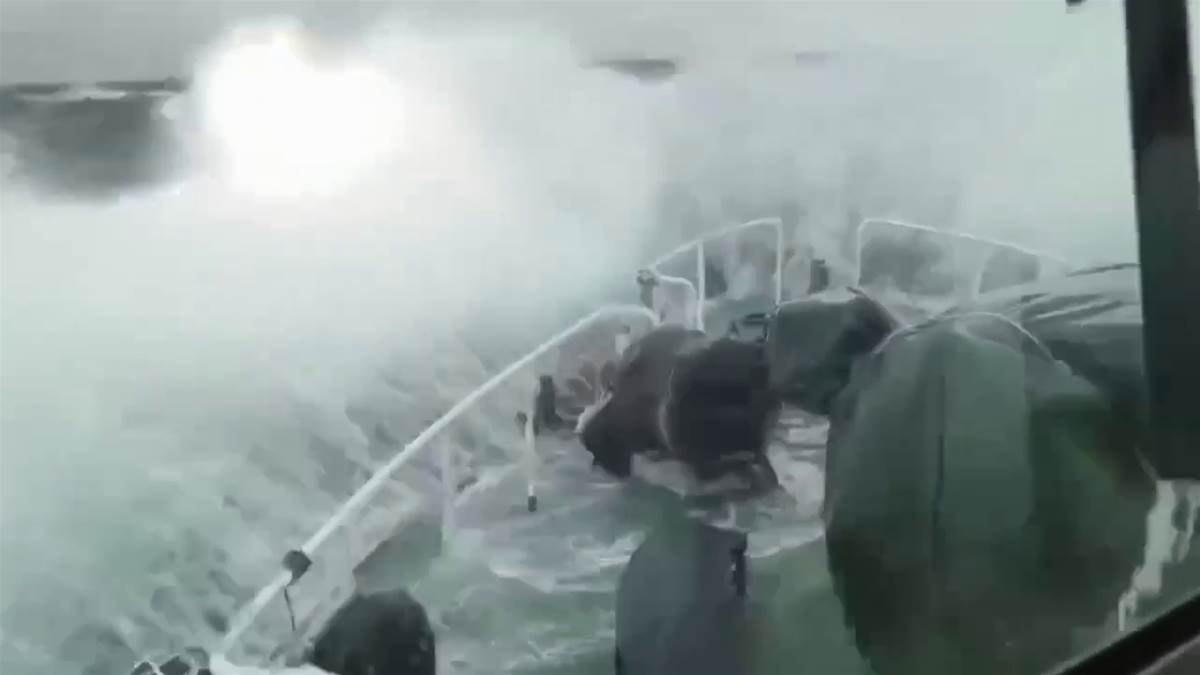 海巡人員7日清晨持續出海搜救。(圖/中天新聞)