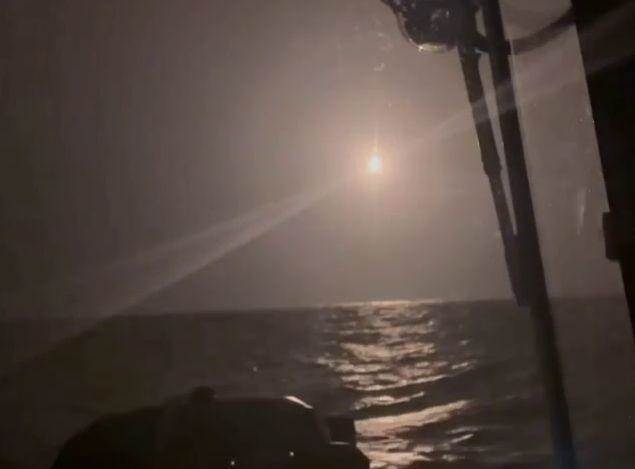 搜救人員施放照明彈。(圖/中天新聞)