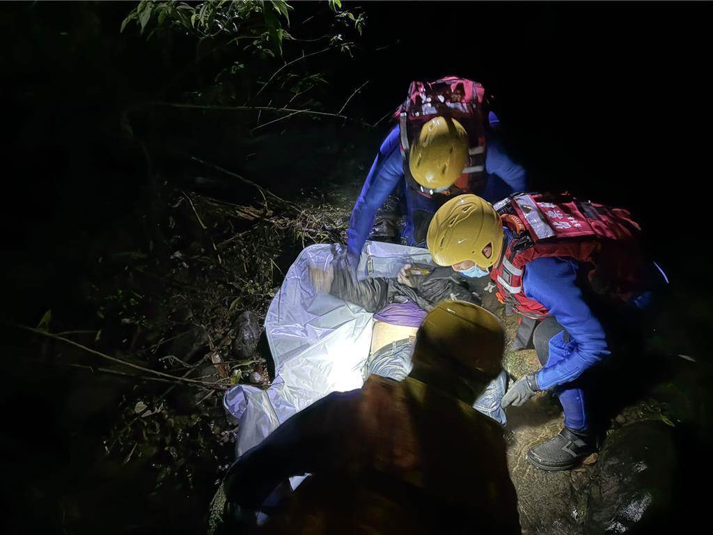 在家屬的配合下,搜救隊沿著河道展開搜尋,直至深夜11點55分,終于在山間河谷發現劉姓農民的遺體。遺體已呈現OHCA(到院前心肺功能停止)狀態,隨後由救援人員將其遺體搬運下山,並交由家屬處理後事。