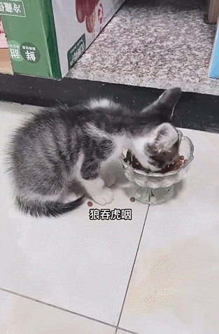 小貓狼吞虎咽地吃下第一頓貓糧,香味像是勝過它品過的所有風霜。