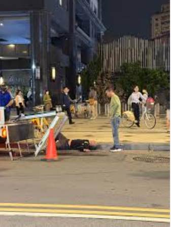 有現場民眾透露:「目擊全部過程,他那時候突然停下來,不知道在跟路人吵什麼,感覺情緒很激動,結果比完中指後就重心不穩,直接往左側車道倒下去。」