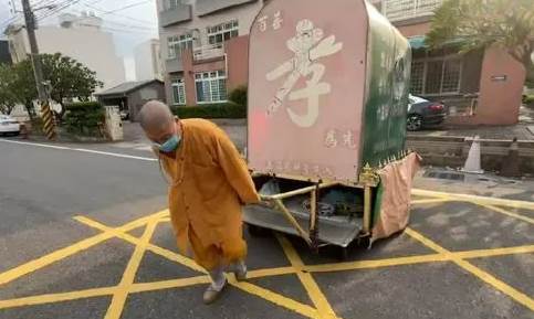 據悉,該位僧侶為界舟法師,時常出沒屏東市區,過去他曾受訪透露,他從1999年就開始推棺材勸世人孝順要及時,因為自己從來沒有對父母親孝順過,藉此方式來懺悔,讓父母親有一個好報。