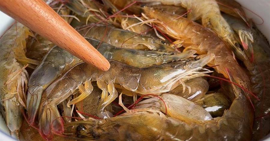 第1步:用牙簽把明蝦當中的蝦線挑出來,然后再用剪刀把蝦頭當中黑色的部分,也就是蝦胃一起擠壓出來。