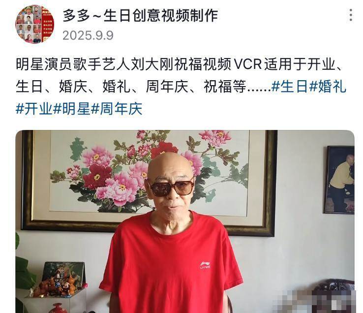 9月份左右,劉大剛還曾現身鏡頭前為某開業儀式送祝福,畫面中的劉大剛身穿紅色T恤,戴著墨鏡,狀態看起來并不是很好,尤其是身形,可以說瘦到皮包骨頭。