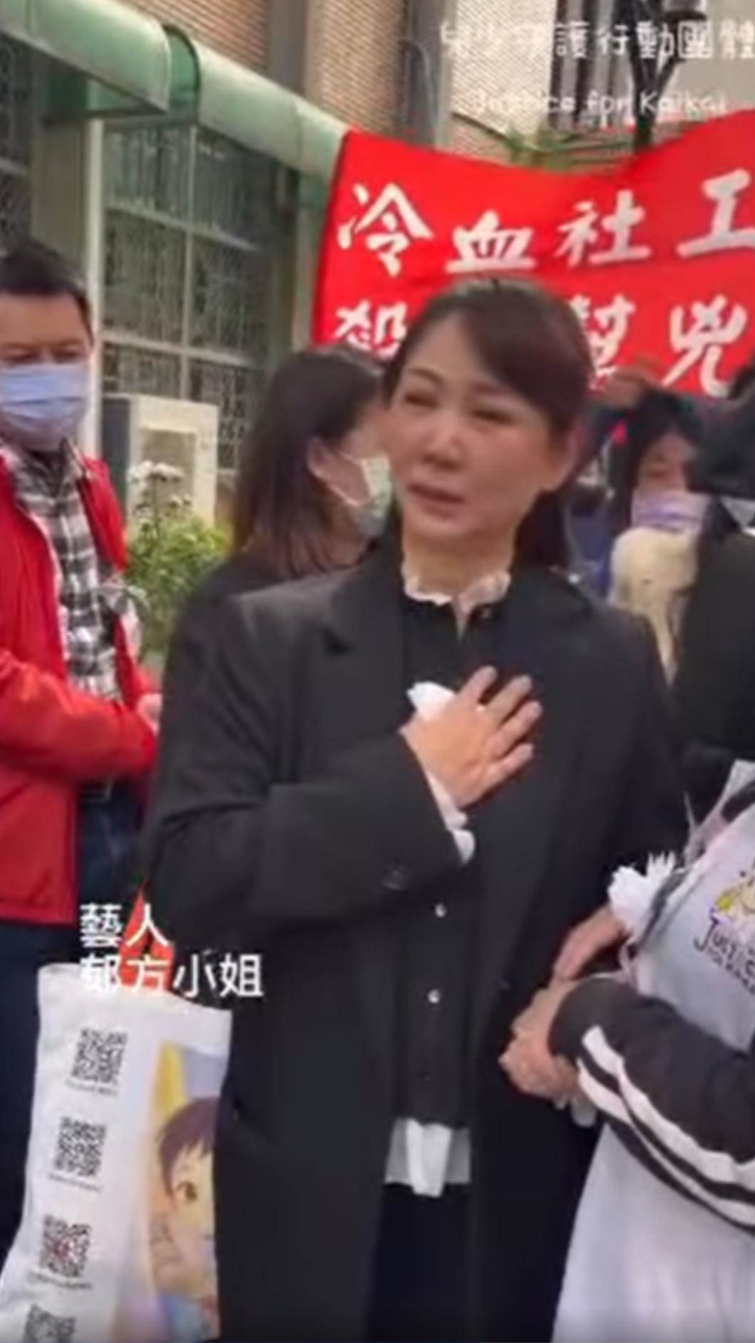 郁方于現場情緒激動,哭到燒聲,直言:「不是善良的人就應該被欺負,剴剴在天之靈,雖然已經來不及了,我們真的很希望可以抱抱他。你們如果看過他的遭遇,沒有一個人承擔得了。我祝福劉彩萱、劉若琳、陳尚潔,你們接下來的日子都過上剴剴一樣的生活,你們下輩子投胎都遇到劉彩萱、劉若琳、陳尚潔這樣的人照顧你們,下地獄吧!」此番言論引發現場民眾共鳴,也再度將兒童保護議題推上輿論高峰。