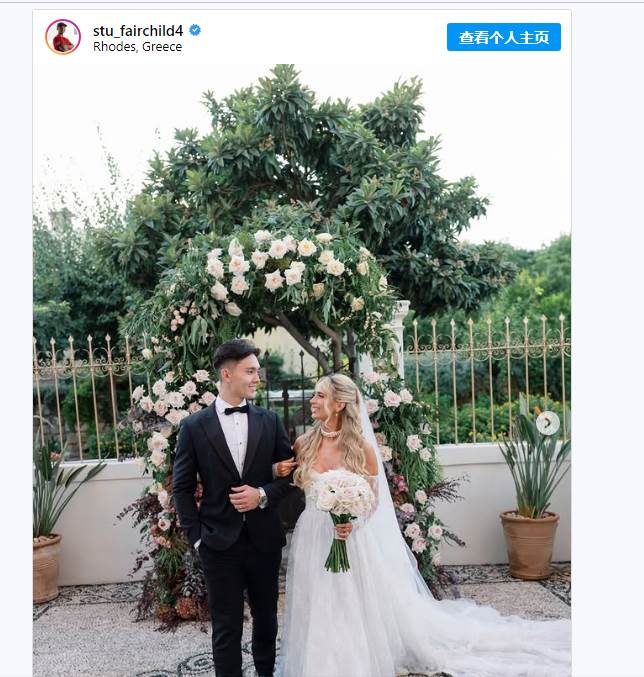 費仔和老婆漢娜4個月前才剛新婚。(圖/翻攝自IG@stu_fairchild4)