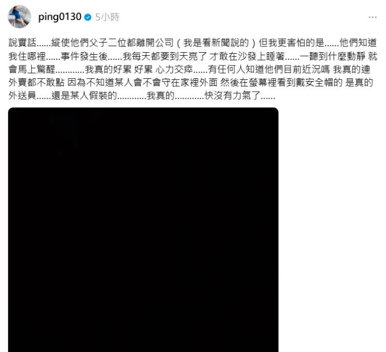 事件爆發後,龔益霆雖否認指控,還表示兩人曾是情侶關係,要求江祖平刪除不實貼文,否則將提告。然而江祖平在凌晨時分發文透露,即使龔父子已離開電視台,她仍無法擺脫恐懼,因為對方知道她的住處。更令人不安的是,她每天都要熬到天亮才敢在沙發上小憩。