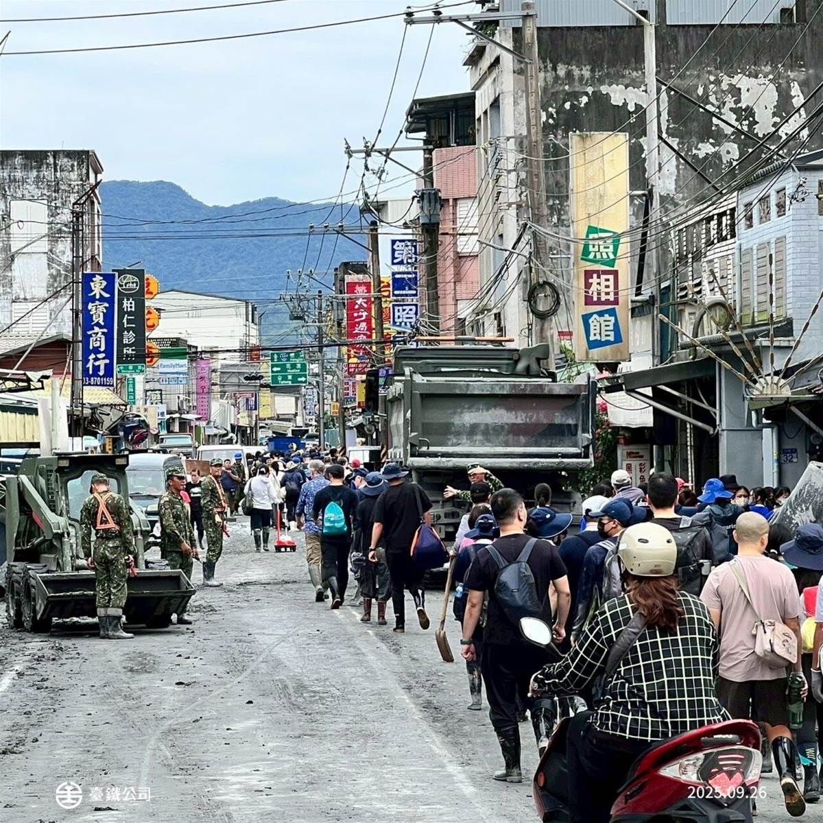 此外,光復市區遭洪水泥流襲擊,幾乎有2/3區域陷入泥沙堆中,隨著人力進駐,污泥不斷被清出,將道路空間壓縮,行車處處受限。