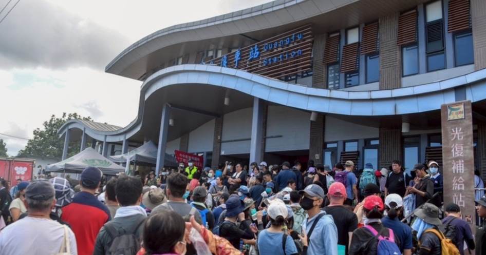 根據公開統計數據顯示,截至今年8月31日,光復鄉總人口數約1萬1000多人,但台鐵27日單日載運至光復站的人次就已超過3萬,今天預估會更多,再加上熱心的各式車隊,整個光復鄉可說被人車塞爆。
