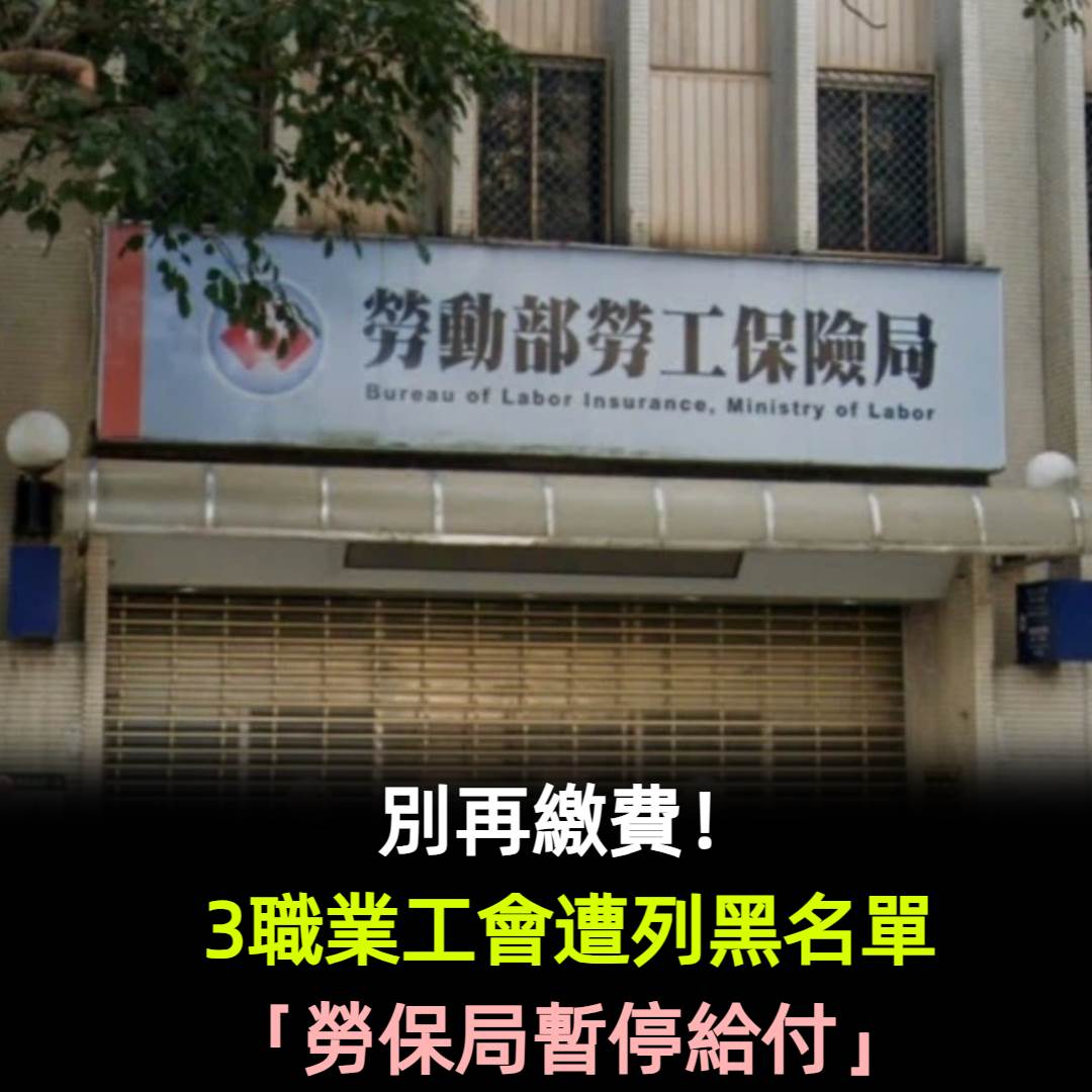 根據《ETtoday財經雲》報導,勞工保險局公佈最新欠費名單,截至本月16日為止,全臺有3家職業工會因積欠勞保費及職災保險費用超過期限未繳納,已被列入管制黑名單,相關給付將暫時停止發放,提醒所屬會員不要再繳交費用。