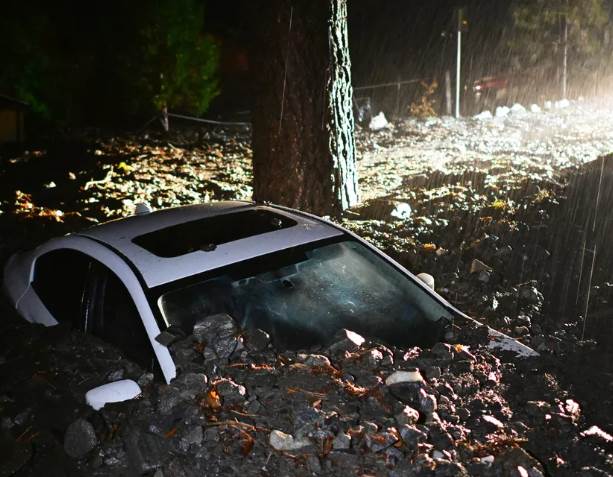耶誕節一系列風暴侵襲美國加州,豪雨在南加州野火肆虐過的地區引發洪水和土石流警報,預計暴雨和強風將持續到明天。
