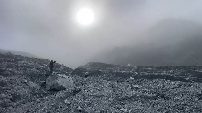 林保署花蓮分署上個月30日組成2支深山探勘小隊,進行馬太鞍溪堰塞湖路線踏察特遣任務,確認可通行路徑;昨天順利抵達湖區,山區呈現灰白荒蕪、煙塵瀰漫景象。
