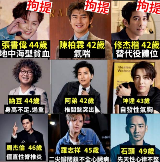 周杰倫、棒棒堂敖犬、李易、余祥銓等人都因僵直性脊椎炎免役,尤其周杰倫曾對媒體表示,發作時就像90歲老人,受這種苦簡直比經痛還痛。