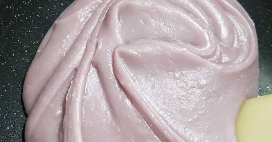 把香芋紫薯糊倒入不粘鍋、加入糖、水飴,豬油,調中小火不停翻炒