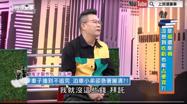 原本他不太想計較,也打算當作沒看到,但還沒開口說話,那名泊車小弟就自己招了,不斷否認:「誰撞的啦!我這輩子開車不會這樣啦!」隨後則是把沈玉琳拉到一旁,用一副快要哭出來的表情向他求情,說自己賠不起那個損失。雖然心裡很明白車子肯定是泊車小弟不小心A到的,但看著他紅了眼眶,沈玉琳當下就心軟了,馬上就決定不再追究。