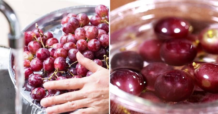 方法一:「食用堿清洗法」,把葡萄泡在食用堿的水中,15分鐘后用流水反復地沖洗