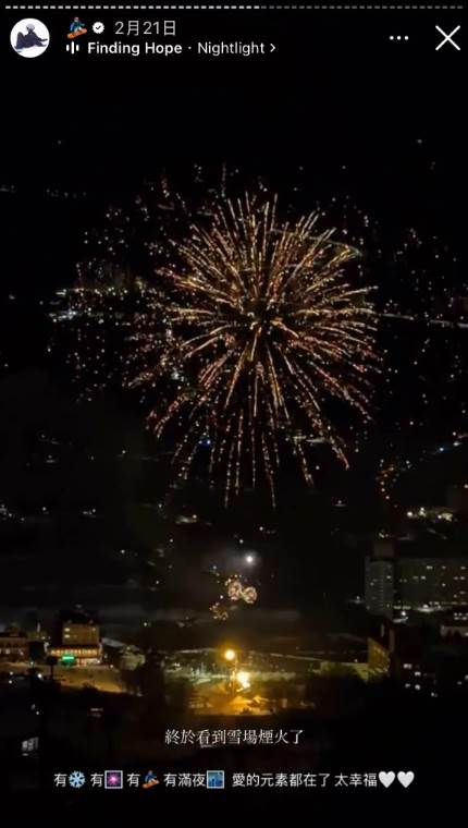 篠崎泫分享雪場煙火的影片疑似是在吳男私宅拍攝。(圖/翻攝自篠崎泫IG)