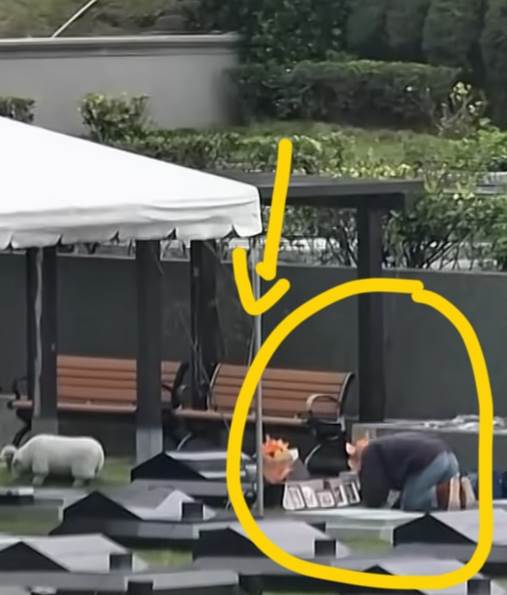 具俊曄先是站在愛妻大S的墓前默哀了一會兒,口中念念有詞,然后就跪拜在了大S的墓碑前。