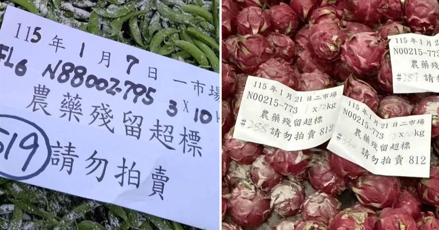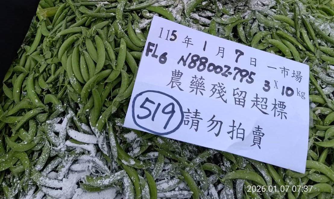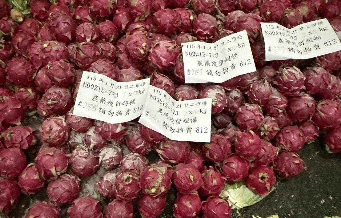 臺北市市場處表示,臺北農產公司115年1月監測批發市場蔬果農產品農藥殘留監測結果,共計抽驗930件蔬果產品,檢驗結果874件合格,另有56件不符合規定,主要不合格品項為豌豆、辣椒及紅龍果,不符規定之貨品均完成攔截及報廢,銷毀重量計7384公斤。