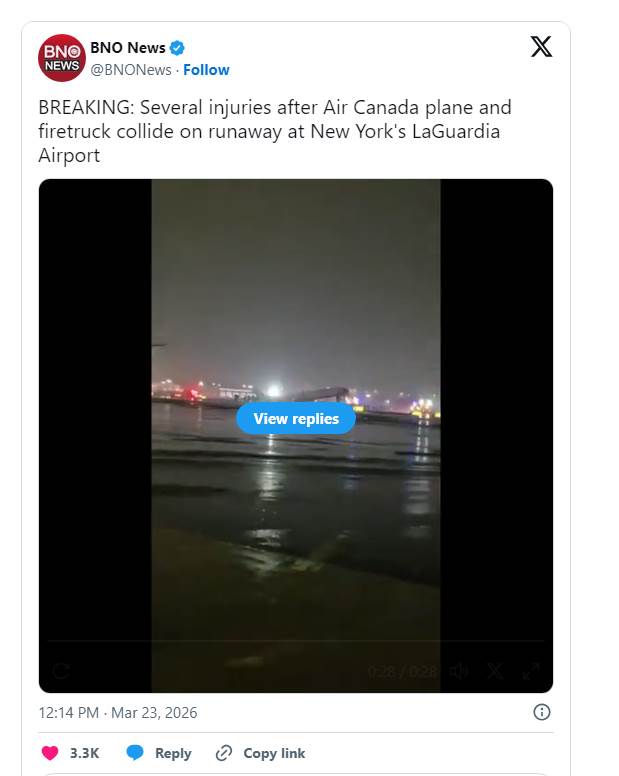 《路透社》報導,肇事客機為加拿大航空(Air Canada)營運之 CRJ-900(Bombardier CRJ-900)支線噴射客機,從加拿大蒙特婁飛往紐約,降落時以每小時39公里的速度和地面消防車發生碰撞,目前相關傷亡狀況仍未明朗。