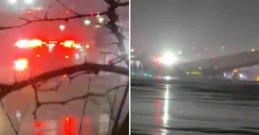 美國紐約拉瓜迪亞機場(LaGuardia Airport)發生班機碰撞地面車輛事故。(圖/CNN)