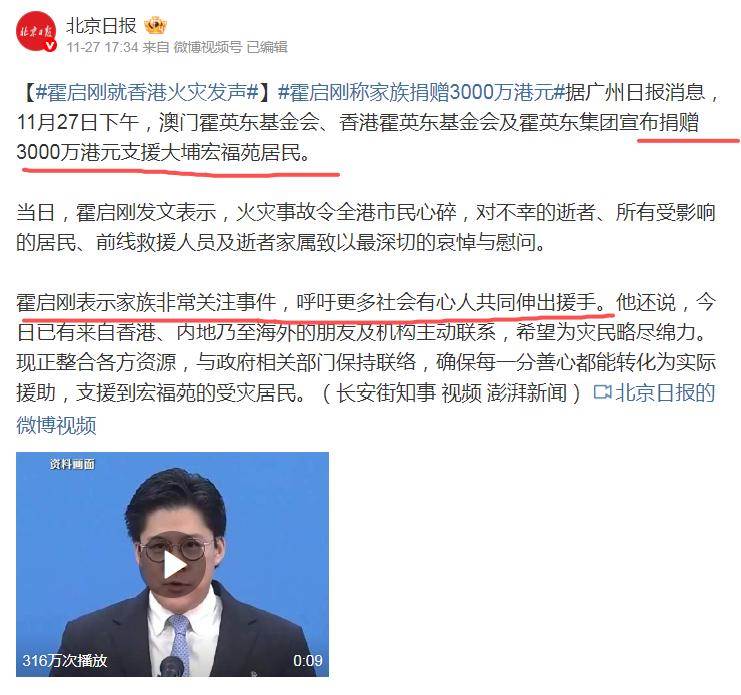 「香港豪門」也沒缺位,就像霍啟剛帶頭的霍家,一出手就捐出3000萬港元,專項用于災民安置和社群重建。