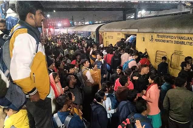 根據《ETtoday新聞雲》、《CTWANT》報導,事情發生于2025年2月15日晚上8點左右,數以千計的信徒正準備前往普拉亞格拉吉(Prayagraj)參加大壺節(Maha Kumbh festival)活動,由于兩班列車延誤抵達,大批等候多時的朝聖乘客蜂擁湧向14、15號月臺爭相擠入車廂,混亂中有人跌倒,後方人潮來不及反應,導致更多人遭到踩踏。