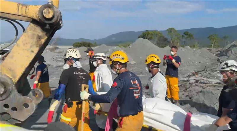 馬太鞍溪堰塞湖溢流,重創下游的光復鄉,統計已有18人罹難、6人失聯,其中失聯的砂石場老闆娘一直都沒找到人,公司和民間的挖土機持續挖掘。今(8日)花蓮縣消防局在佛祖街336巷一帶挖到失聯的砂石場老闆娘的汽車,車上初判有一具遺體,疑似是砂石場老闆娘,但車體已經嚴重變形,使用油壓剪小心破壞車體後,順利拉出遺體,確認是失聯的黃姓老闆娘。