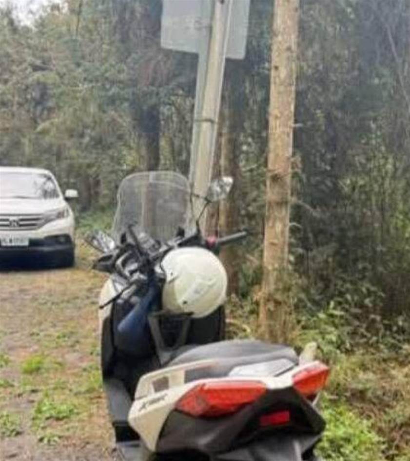 魏男的摩托車遺留在山下。(圖/魏小姐提供)