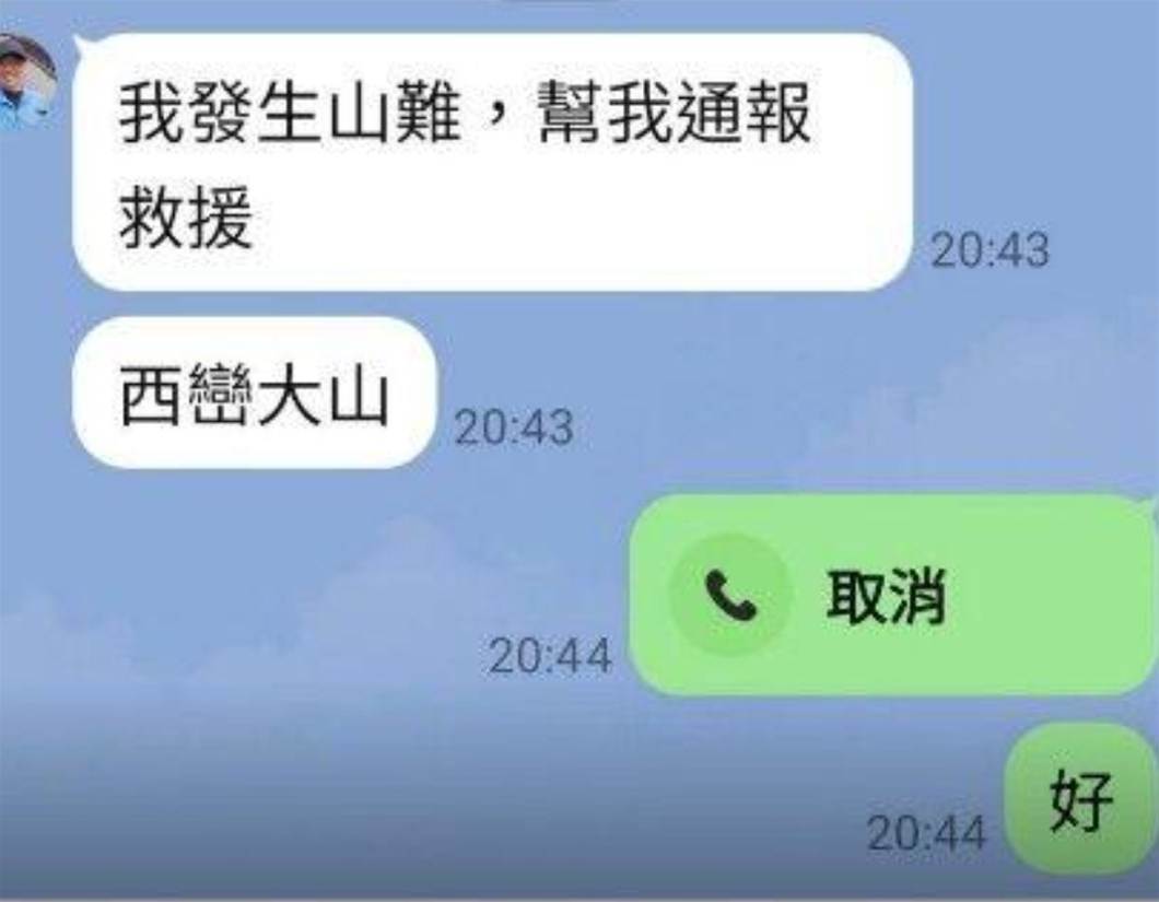 魏男獨攀西巒大山失聯多日,搜救隊于今(14)日下午發現魏男的遺體。(圖/魏小姐提供)