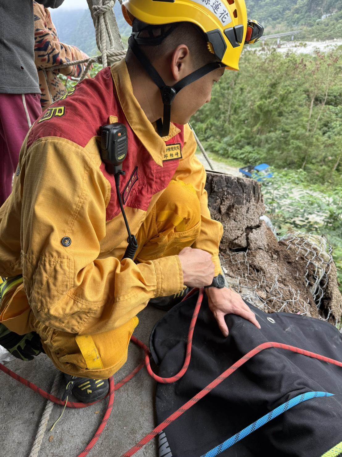 參與救援的消防隊員表示,「現場環境相當險峻,若單純依靠人力搬運,不僅可能造成傷者二次傷害,救援人員也有墜落風險」。救援團隊協同轄區分隊完成繩索固定點架設後,派遣救助人員下降約5公尺深處接觸患者。