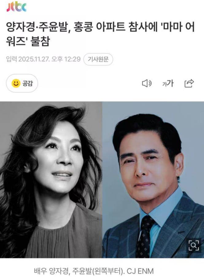 更尷尬的是本就定好做為嘉賓登台的楊紫瓊和周潤發,若兩人在火災之后登台與韓國明星頒獎、同慶頗為不妥。
