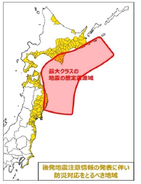 巨大地震警報涵蓋的范圍相當廣泛,包括北海道(63市町村)、青森縣(28市町村)、巖手縣(23市町村)、宮城縣(35市町村)、福島縣(10市町村)、茨城縣(9市町村)、千葉縣(14市町村),合計7個道縣、182個市町村都可能面臨強震。