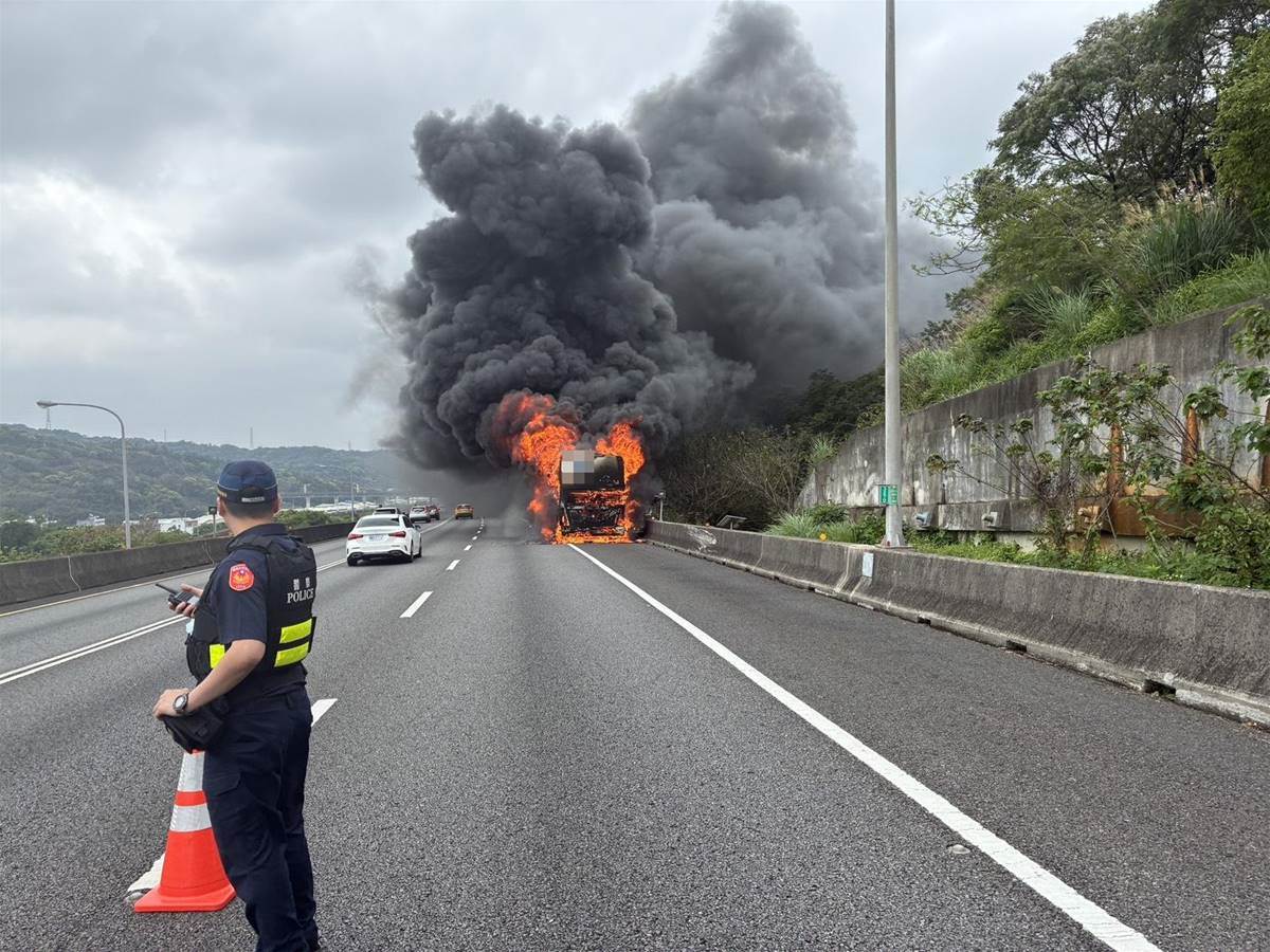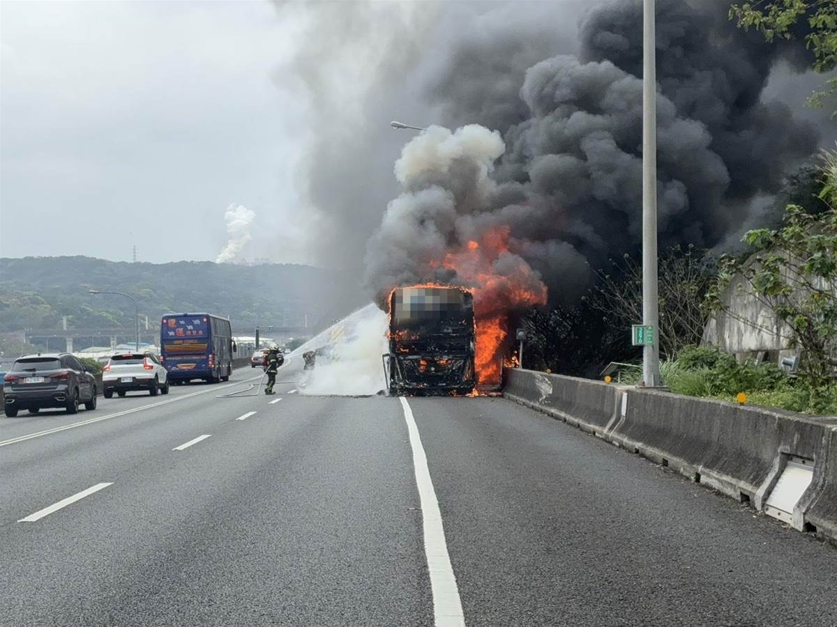 該起事故發生于今天中午12時50分,47歲的林姓男子駕駛大客車載著24名本國乘客從基隆開往高雄,行經國道1號五楊高架道南向45公里桃園路段,發現車輛引擎不明原因冒煙,趕緊停靠路肩,車輛隨後就起火燃燒,警消獲報後立即趕到現場,所幸林姓駕駛及時發現將車輛停下,並立即疏散乘客下車,林姓駕駛眼睛遭濃煙燻傷,及2名乘客因下車時不慎跌倒手部及臉部擦挫傷,經救護人員檢傷皆無大礙,現場排除中,通報交控中心于CMS提醒用路人注意行車安全,詳細的起火原因仍待消防進一步鑑識。