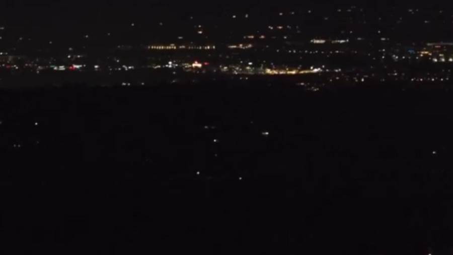 社群X許多空拍顯示,原本一片光亮的住宅、商家與街道,晚間7時41分開始,瞬間陷入大范圍黑暗,連紅綠燈都失靈。