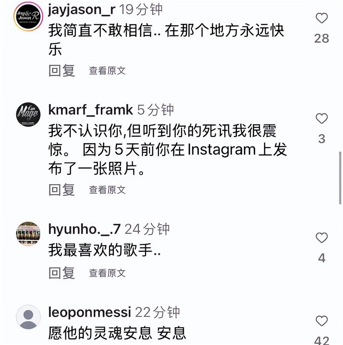 不少韓國粉絲都感到非常震驚,在評論區給他留言,希望他可以好好安息。