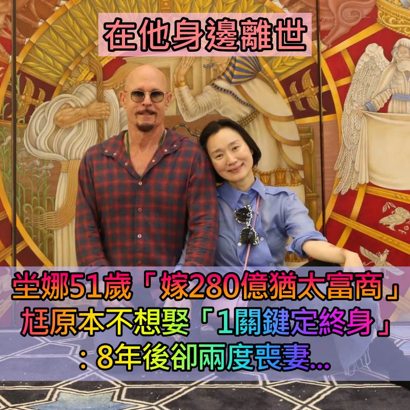 資深玉女歌手坣娜(本名蔡宜樺)于16日不敵胰臟癌病逝,享年59歲,消息一出震驚演藝圈。她在2017年步入婚姻殿堂,嫁給身價超過280億元新台幣的猶太裔美籍富商、「四星國際」董事長薛智偉,婚後逐漸退出演藝事業,全心投入台灣與猶太文化的交流活動。而感情甜蜜的這對夫妻如今天人永隔,讓人相當心疼。