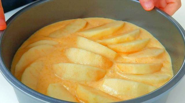 1.將一個蘋果切成兩半,一個蘋果對半切開加它的中間的核去掉。打入兩個雞蛋,攪拌均勻。