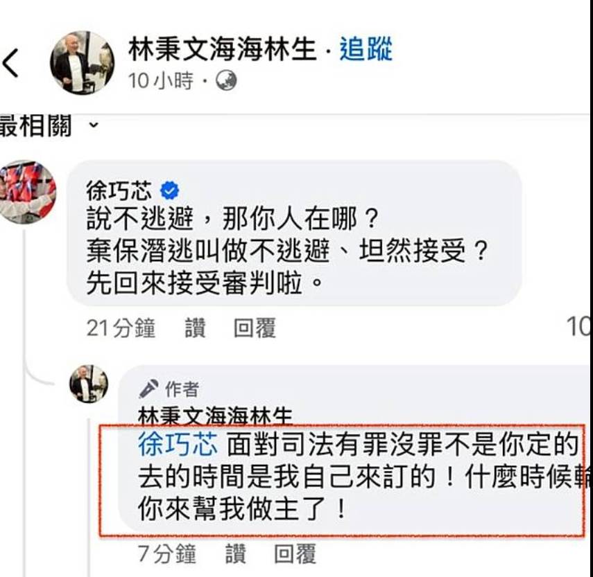 逃亡在外FB上線開嗆藍委:回台時間我自己訂