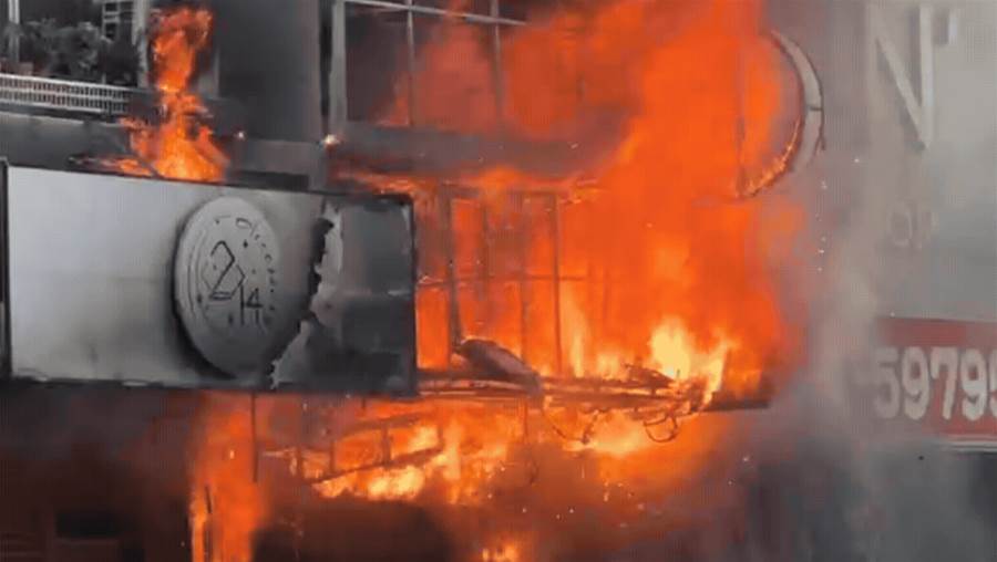 今(24)日上午11時08分,台中市西屯區逢甲商圈一棟5層樓高的店鋪發生火災,初步研判疑似因電線走火引發火勢,現場濃煙密布,火舌迅速蔓延,不僅使建築物內部陷入火海,更延燒至隔壁店鋪,引發民眾緊張。台中市消防局接獲通報後,立即啟動緊急應變機制,調派第八大隊、中港、文昌、水湳、西屯、黎明分隊,共計出動18輛消防車與38名消防人員趕赴現場救援。