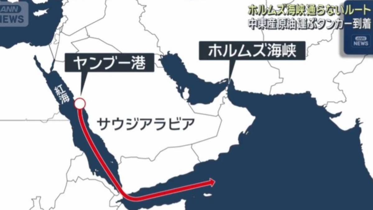 這批原油並未航經荷莫茲海峽,而是透過油管,被運往位在紅海沿岸、沙烏地阿拉伯西部的揚布港(Yanbu),接著在本月1日透過油輪載運並出發,後來在馬來西亞轉裝到其他油輪,再運到日本。